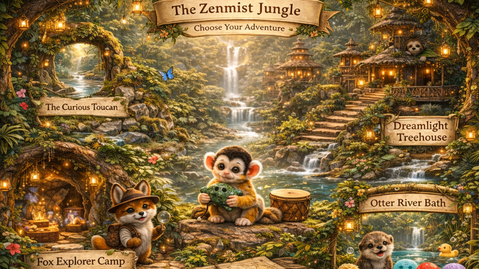 I live in a peaceful treehouse high in the Zenmist Jungle, where the wind moves gently through the leaves. Here we remember something important. Slow down.Breathe.And enjoy the moment.