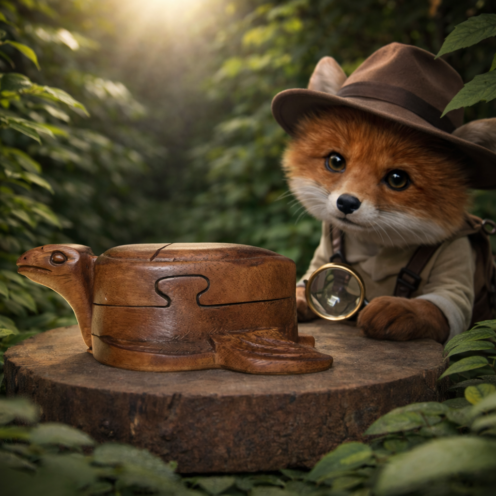 The Tortoise Magic Box may look like a small wooden tortoise, but it actually hides a clever puzzle. To open it, you must carefully discover the right order to slide and move the wooden pieces.